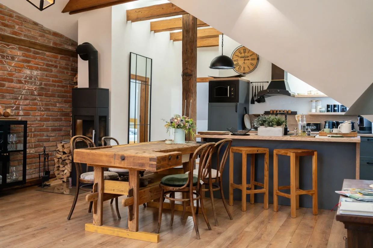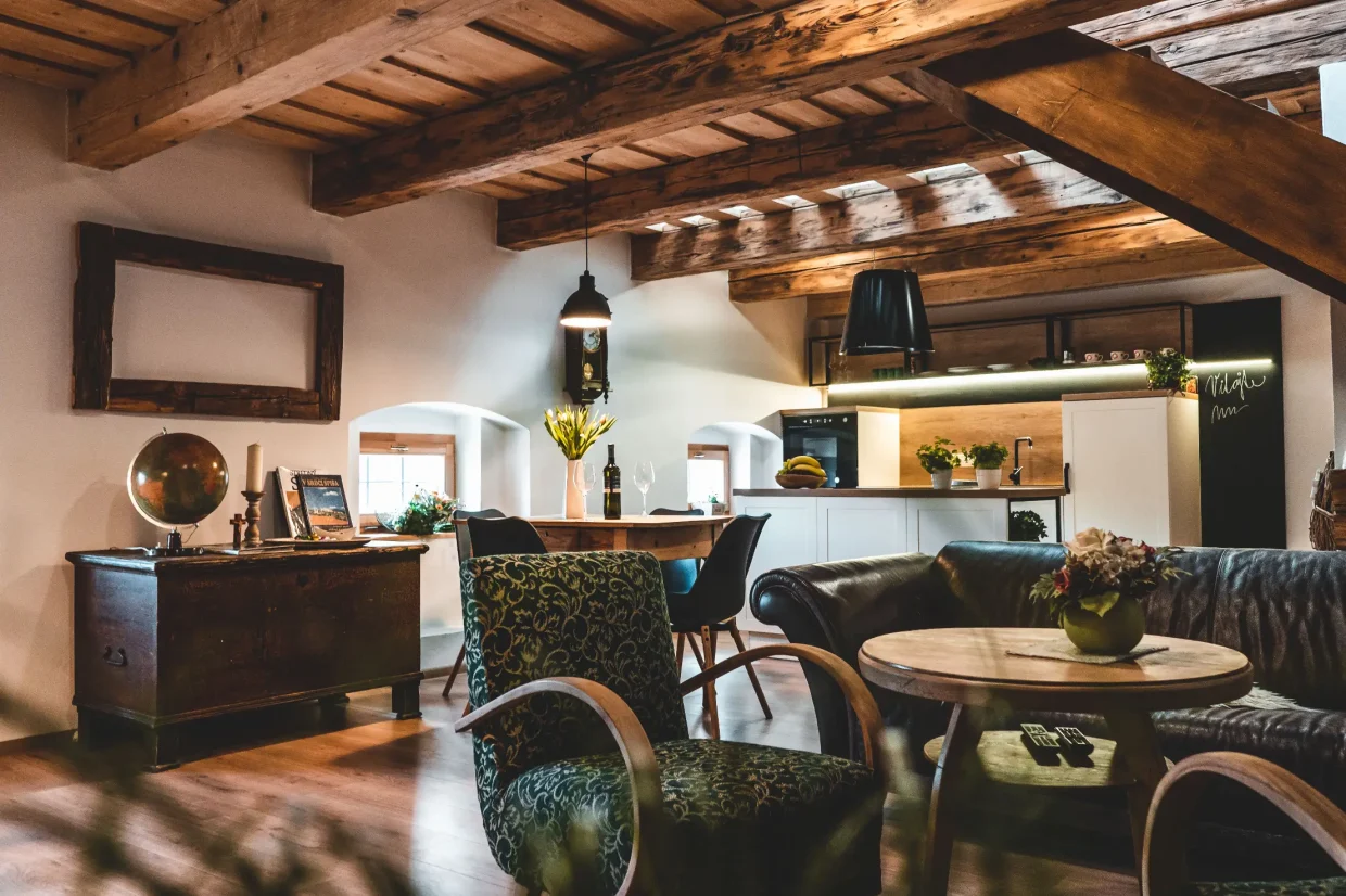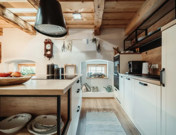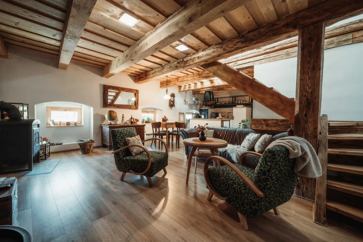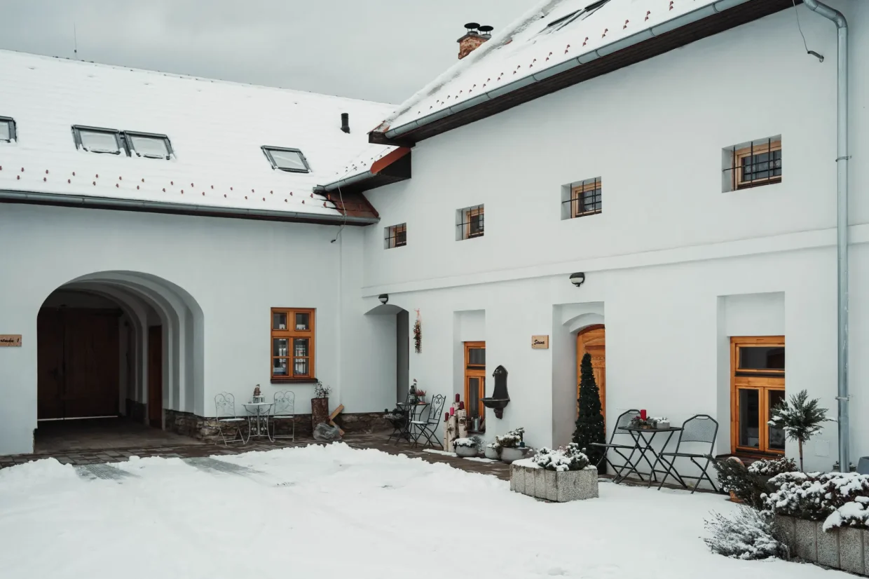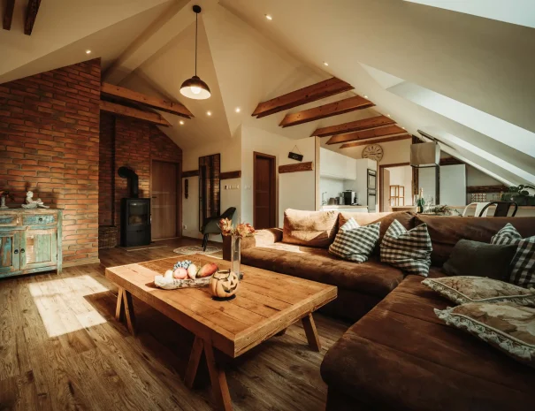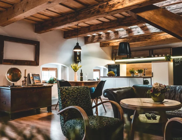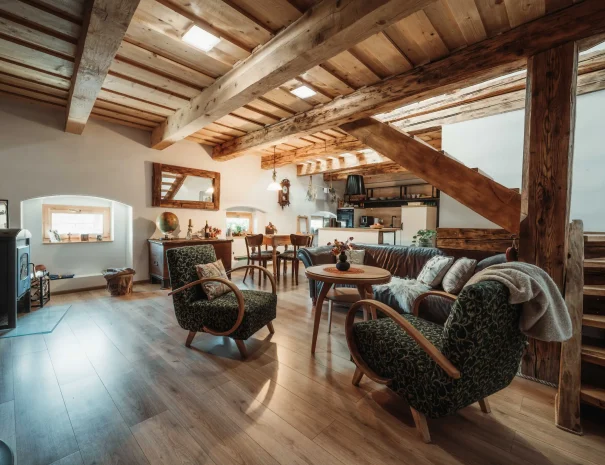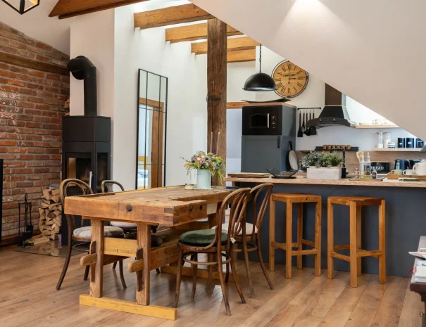 Ubytovanie v zrekonštruovanej kúrii z 19. storočia, kde sa zachovali pôvodné múry a drevené trámy.